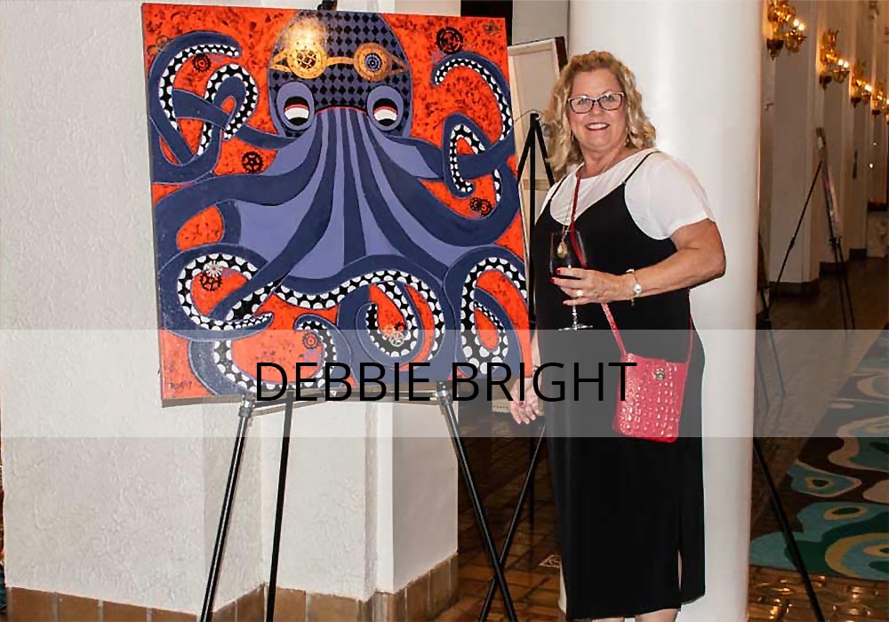 Debbie Bright is a signature member of the International Society of the Acrylic Painters – Florida (ISAP-FL) and has participated at many local benefits, art shows and events.